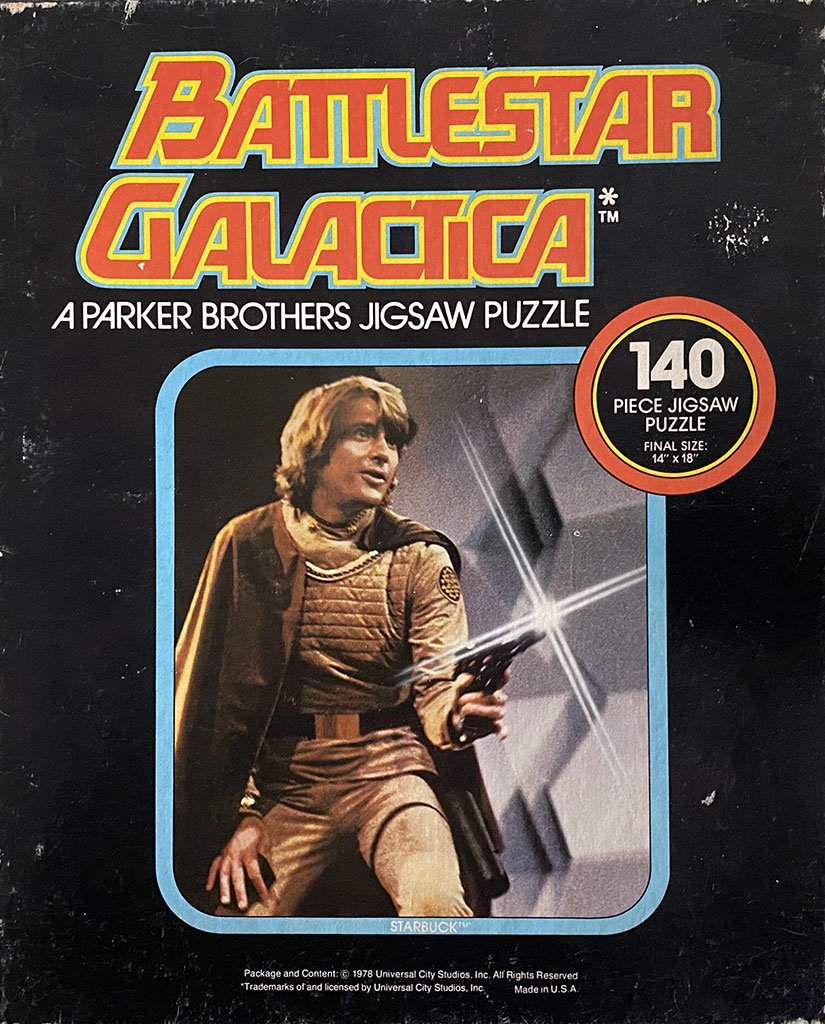 A 140-piece jigsaw puzzle featuring Starbuck from the 1978 television series Battlestar Galactica. No 109 / 1978 Parker Brothers