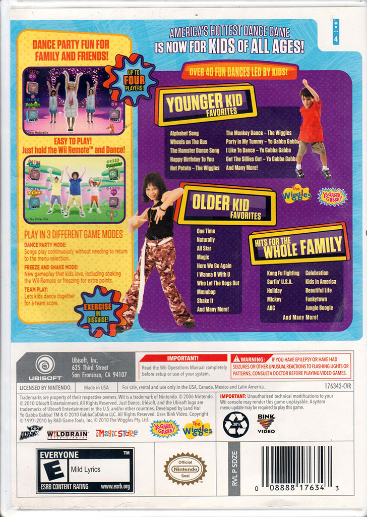 Just Dance Kidsin Arcade > Console > Nintendo Wii > Software A four-player music and dance game for the Nintendo Wii, developed by Land Ho! And published in 2010 by Ubisoft. Front Cover Back Cover https://dev3.petecahill.com/wp-content/uploads/2024/04/24041404-1-1.jpg 1024 728 Pete https://dev3.petecahill.com/wp-content/uploads/petecahill/petecahillcomlogoheader.gif Pete2024-04-14 00:04:082024-04-14 09:04:21Just Dance Kids